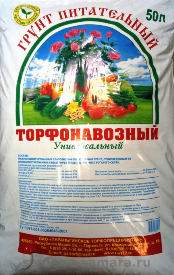 Малоконцентрированный слабокислый питательный грунт, произведенный из прокомпостированной смеси торфа и навоза крупного рогатого скота.